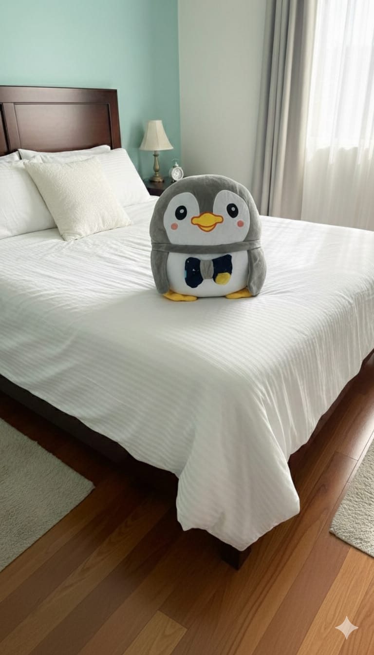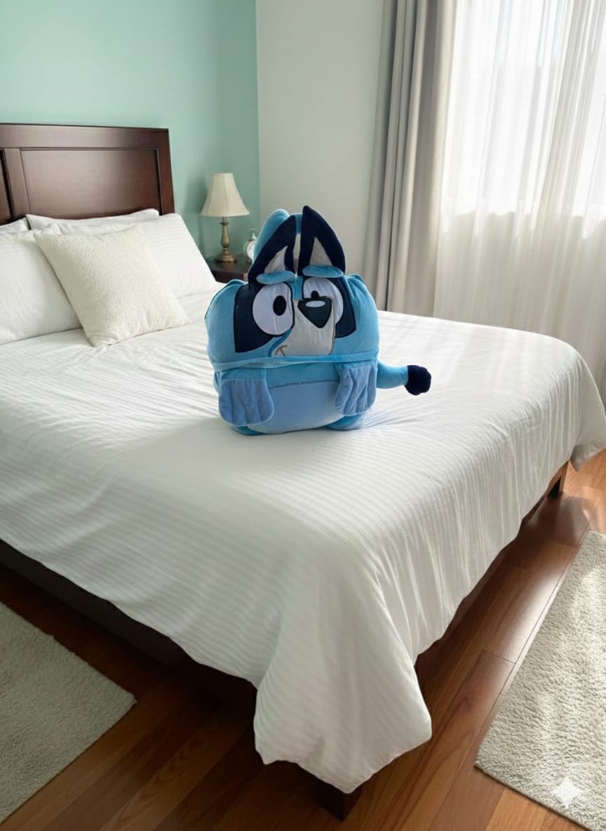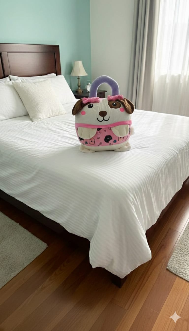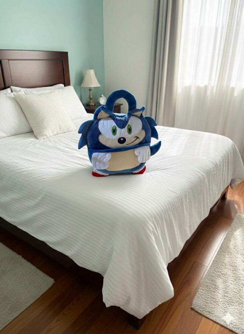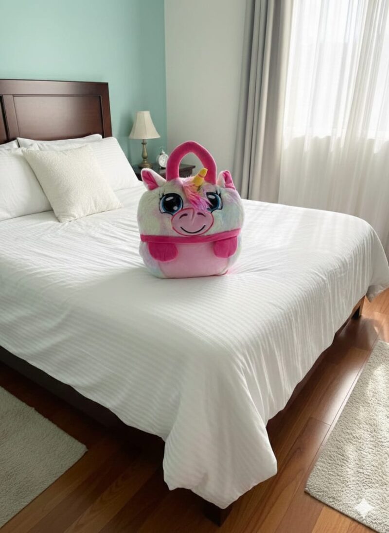 Cobija viajera que se convierte en peluche. Ideal para aquellos viajes y el cuidado de los pequeños.